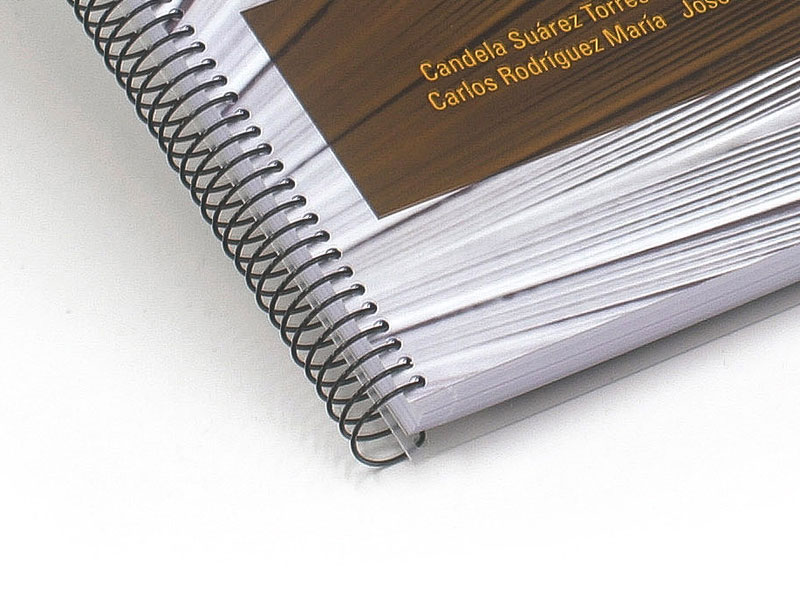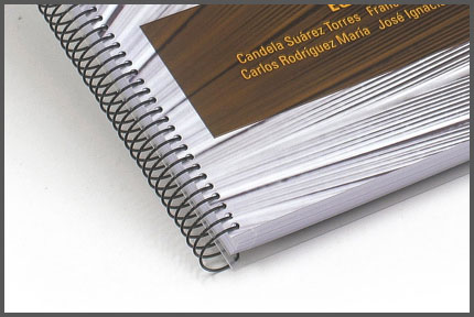 El proceso de encuadernación es un proceso mecánico donde por medio de una mordaza metálica alojada en el interior de la cubierta se sujetan las hojas a la cubierta. La cubierta es un cartón contracolado de 2,5 mm. forrado en geltex, guaflex o telflex. Lo que le da un acabado sólido. El número de acabados es limitado.