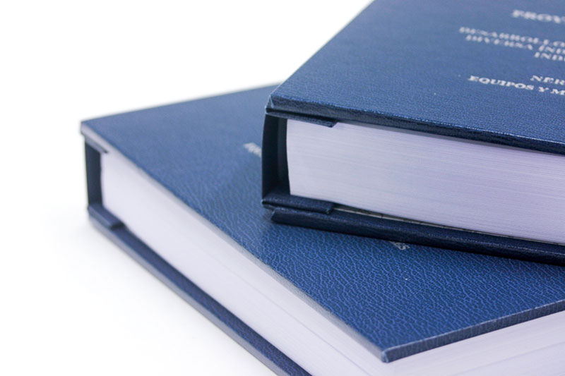 Se estampa portada y lomo según el diseño proporcionado por el cliente en oro, plata o tintas mediante un sistema presión y calor para un acabado duradero.