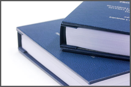 Consulta nuestro catalogo de materiales para la encuadernación forrada en guaflex o telflex.