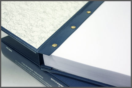 Es una encuadernación de tapa dura compuesta por dos tapas y un lomo flexible. las hojas se sujetan a las tapas del libro mediante tornillos.